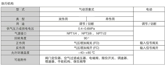 執(zhí)行機(jī)構(gòu):氣動(dòng)活塞式執(zhí)行機(jī)構(gòu)、電動(dòng)執(zhí)行機(jī)構(gòu)