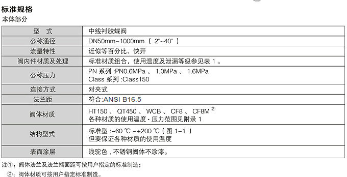 氣動襯膠蝶閥標準規格