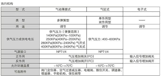 執(zhí)行機(jī)構(gòu):氣動(dòng)薄膜式執(zhí)行機(jī)構(gòu)、氣動(dòng)活塞式執(zhí)行機(jī)構(gòu)、電動(dòng)執(zhí)行機(jī)構(gòu)