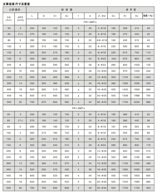 五、Z41J襯膠閘閥主要連接及外形尺寸:
