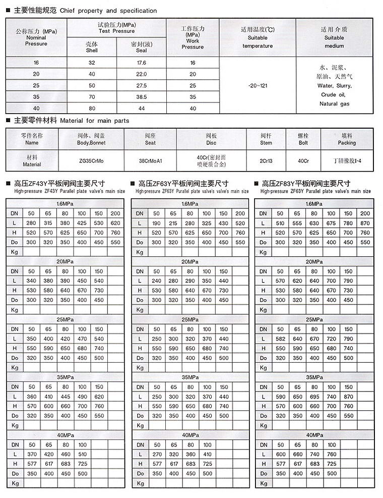 ZF系列注水閥均為高壓平板閘閥。結(jié)構(gòu)合理,密封可靠,操作輕便。密封面均噴焊硬質(zhì)合金,具有防腐、耐磨、耐沖蝕等優(yōu)點(diǎn),且可用于節(jié)流。尤其適用于工作壓力≤42MPa,工作溫度≤120℃的水、油、泥漿、天然氣管線作控制介質(zhì)流動(dòng)的啟閉及調(diào)節(jié)裝置。