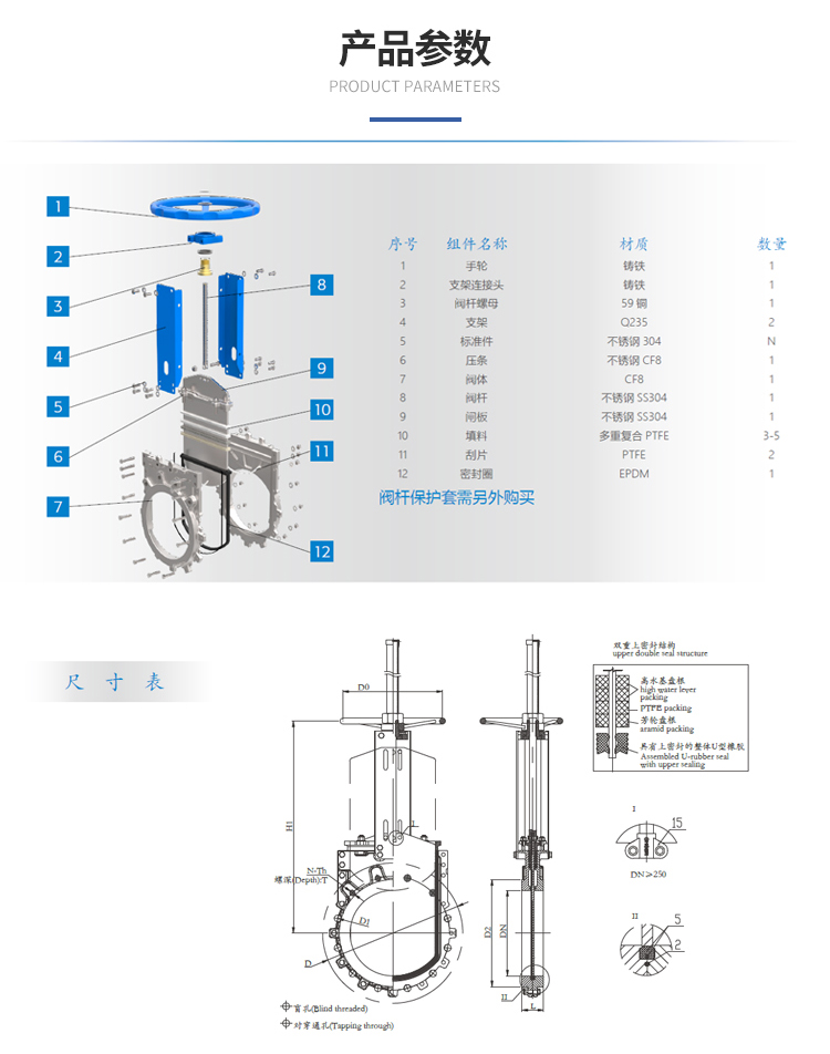 刀閘閥,不銹鋼刀閘閥參數(shù)外形尺寸結(jié)構(gòu)圖:
