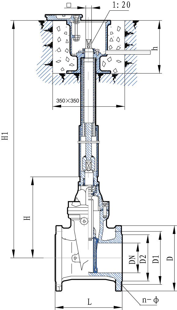 直埋式閘閥,直埋式加長桿閘閥相關尺寸結構圖: