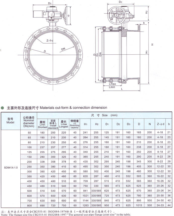 電動伸縮蝶閥,SD943H電動伸縮蝶閥性能參數