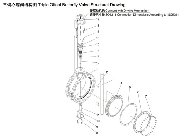美標(biāo)凸耳式蝶閥,三偏心金屬密封蝶閥結(jié)構(gòu)圖: