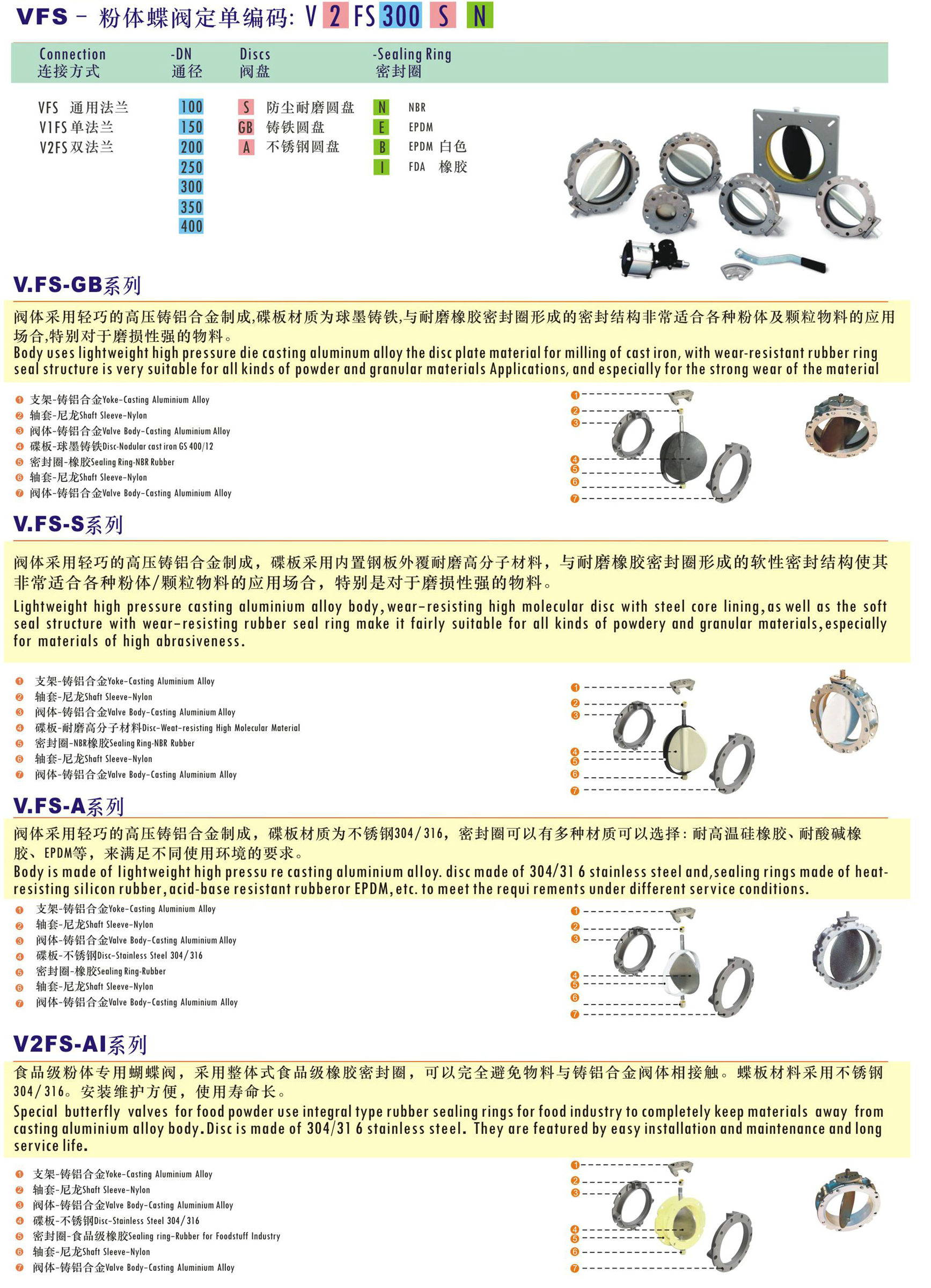 粉體蝶閥,粉末蝶閥,水泥蝶閥產品別名:蝴蝶閥、連接形式:法蘭、材 質:鑄鋁合金、公稱通徑:100-400(mm)、驅動介質:壓縮空氣、壓力范圍:0.2bar(3psi)、適用溫度:80℃、主體材料:半閥體為鋁合金材料,旋轉閥體采用耐磨高分子材料制作、結構形式:垂直板式 、傳動形式:氣動、密封形式:軟密封型、 氣動執行器配置:CP101、CP126型是專門用于粉體、顆粒物料的工業產品。粉體蝶閥閥體橡膠密封圈形成的軟性密封使其非常適合各利粉體,顆粒物料的應用場合,特別是對于磨損性強的物料。在需要重力落料或氣力輸送的粉體,顆粒物料處理系統中,粉體蝶閥常常被安裝在料斗,筒倉,螺旋輸送機出口以及氣送管路上。根據應用要求,可以單獨選配驅動手柄或者氣缸驅動套件。