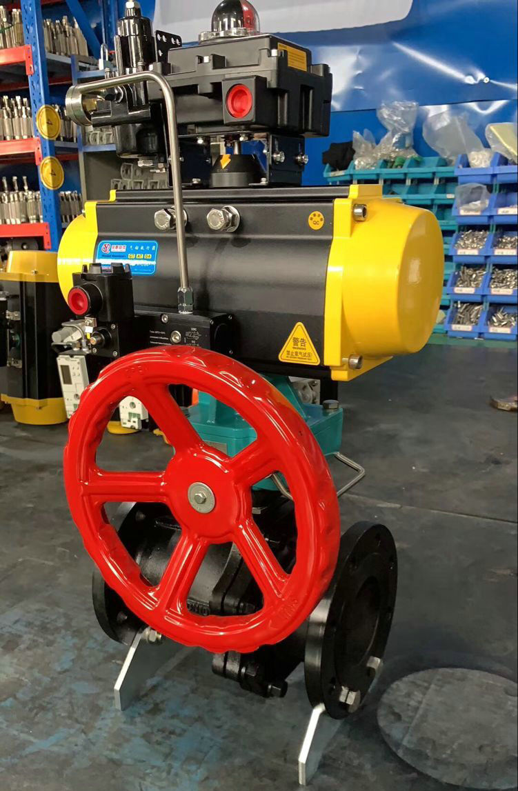 氣動帶手輪球閥采用一體化結(jié)構(gòu)執(zhí)行器:執(zhí)行器形式、控制方式、控制信號(4-20MA)、作用方式(氣-開式,氣-關(guān)式)和普通電動球閥相比具有結(jié)構(gòu)緊湊,體積小,重量輕,閥座與端面法蘭距離近,物料滯留少?梢噪妱訂㈤]也可以手動啟閉,密封性能等特點(diǎn)。通常適用于密封要求嚴(yán)格的場合,廣泛應(yīng)用于化工、石油、制藥、輕工等行業(yè)的自動控制。采用V型通道球體結(jié)構(gòu)與電子式電動執(zhí)行器配套可實(shí)現(xiàn)流量的調(diào)節(jié)。工作壓力到16.0MPa,設(shè)計溫度550以下。