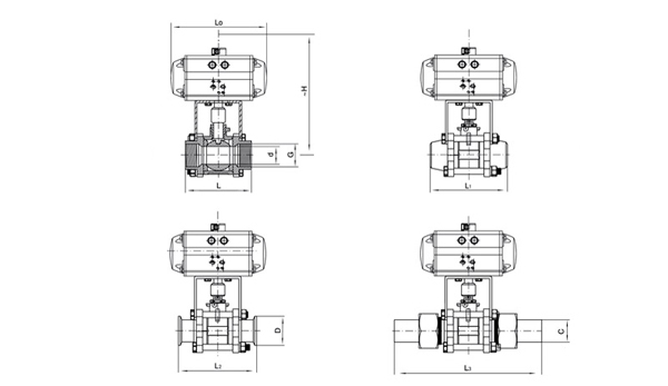 采用系列氣動(dòng)執(zhí)行器,有雙作用式和單作用式(彈簧復(fù)位),齒輪齒條傳動(dòng),安全可靠;口徑閥門采用系列G型氣動(dòng)執(zhí)行器拔叉式傳動(dòng),結(jié)構(gòu)合理,有雙作用式和單作用式。