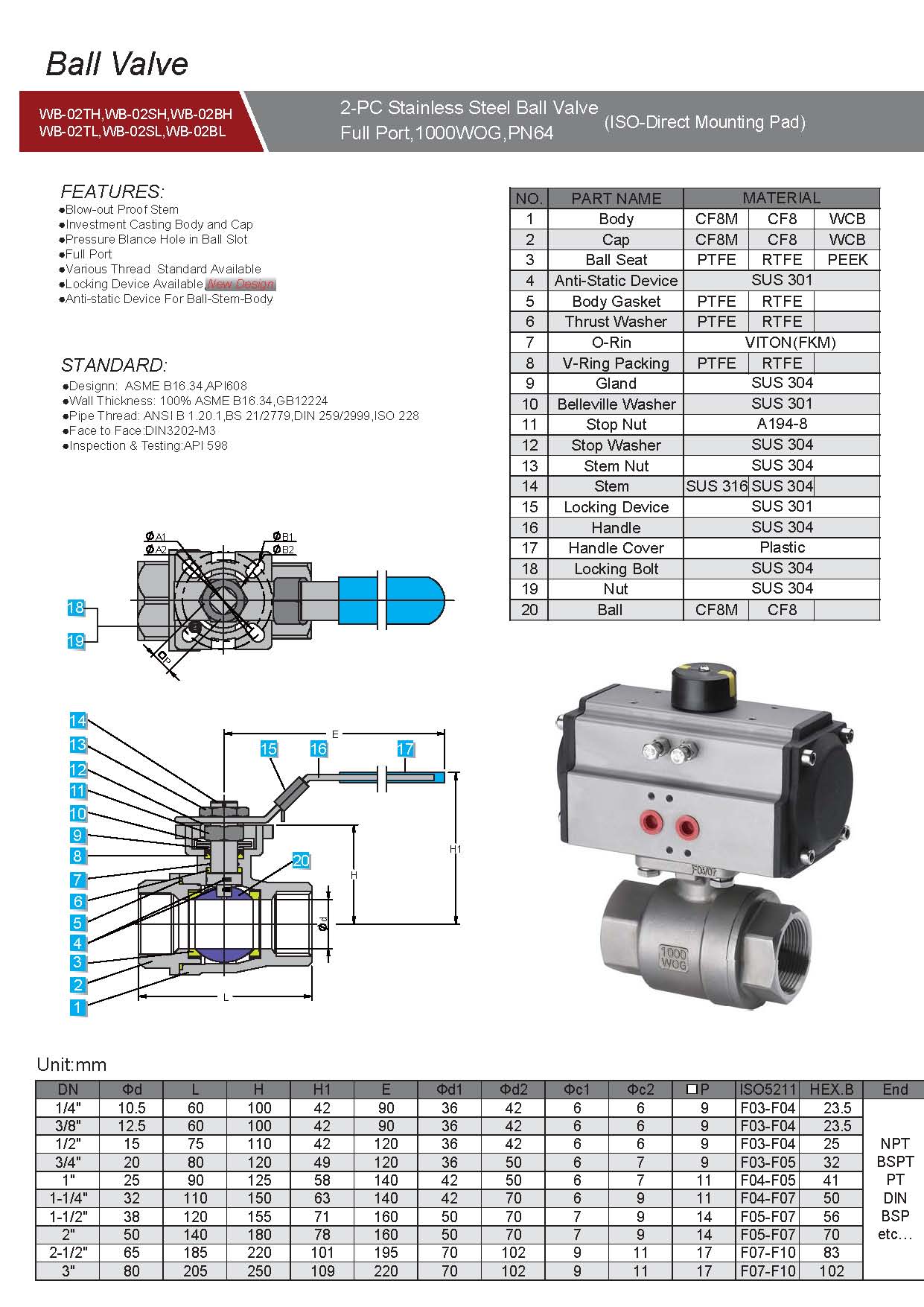 氣動兩片式球閥,不銹鋼氣動兩片式球閥的主要特點是密封可靠,結(jié)構(gòu)緊湊,易于操作和維修。此外,不銹鋼二片式內(nèi)螺紋球閥的流體阻力小,其阻力系數(shù)與同長度的管段相等。不銹鋼二片式內(nèi)螺紋球閥在全開和全閉時,由于球體和閥座的密封面與介質(zhì)隔離,因而高速通過閥門的介質(zhì)不會對閥門密封面造成侵蝕。