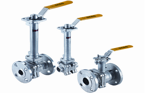 低溫球閥則是可在溫度低于-196℃的工況下使用的球閥,主要用于乙希,液化天然氣等化工裝置上。輸出的液態低溫介質,而且在升溫時要氣化,氣化時,體積膨脹數倍,為了適應自動化控制的需求,往往會根據情況使用加長桿,以避免低溫對驅動機構的影響。如下圖所示,低溫球閥的實際應用。