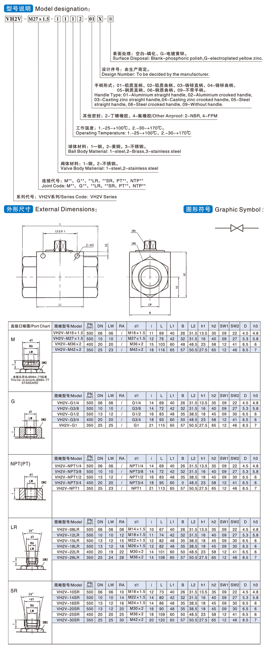 ② 連接代號:M** 、G** 、 **LR 、**SR、PT**、NPT**