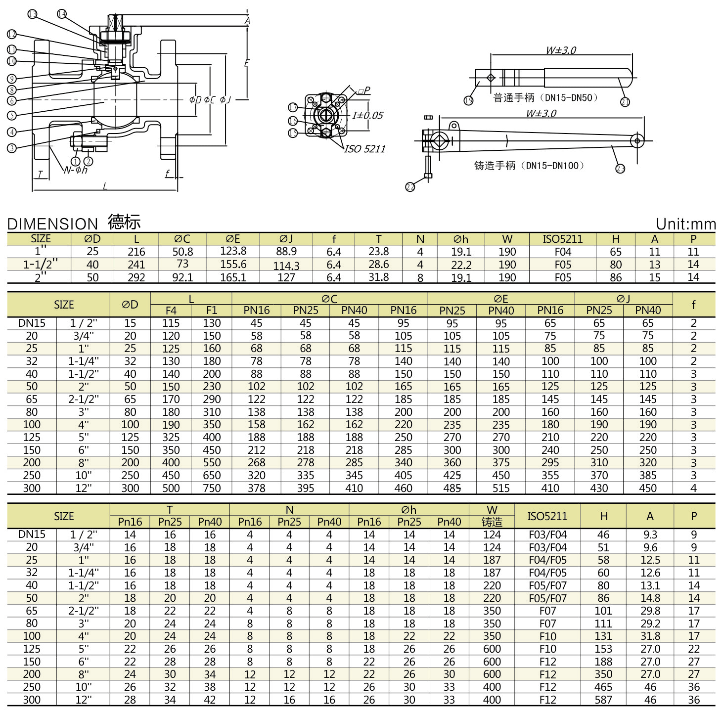德標球閥,德標法蘭球閥參數尺寸圖: