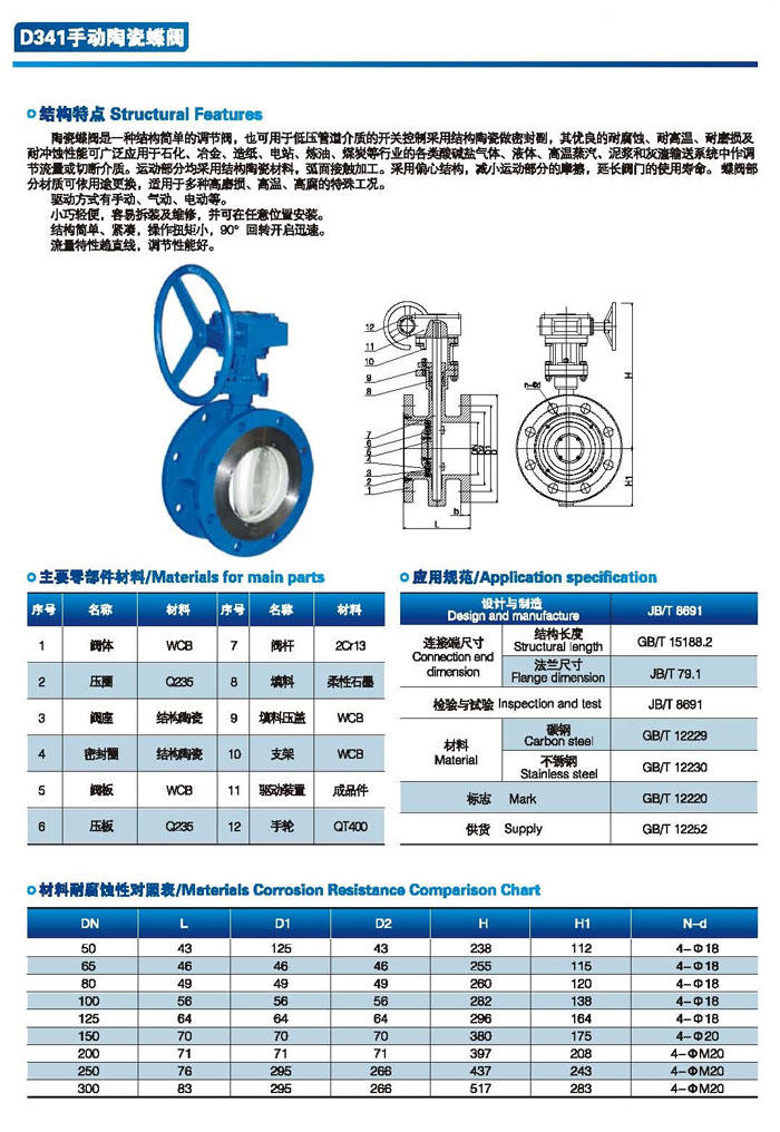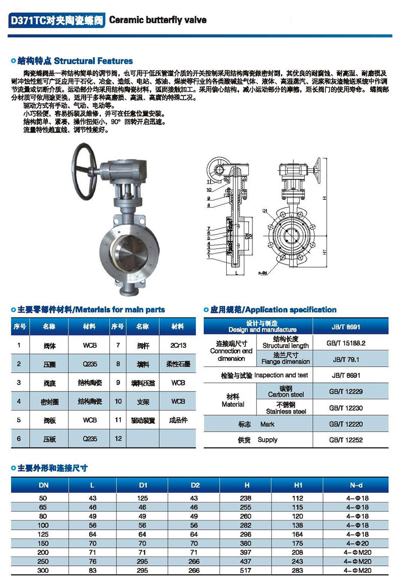 陶瓷蝶閥,D371TC陶瓷蝶閥參數尺寸圖: