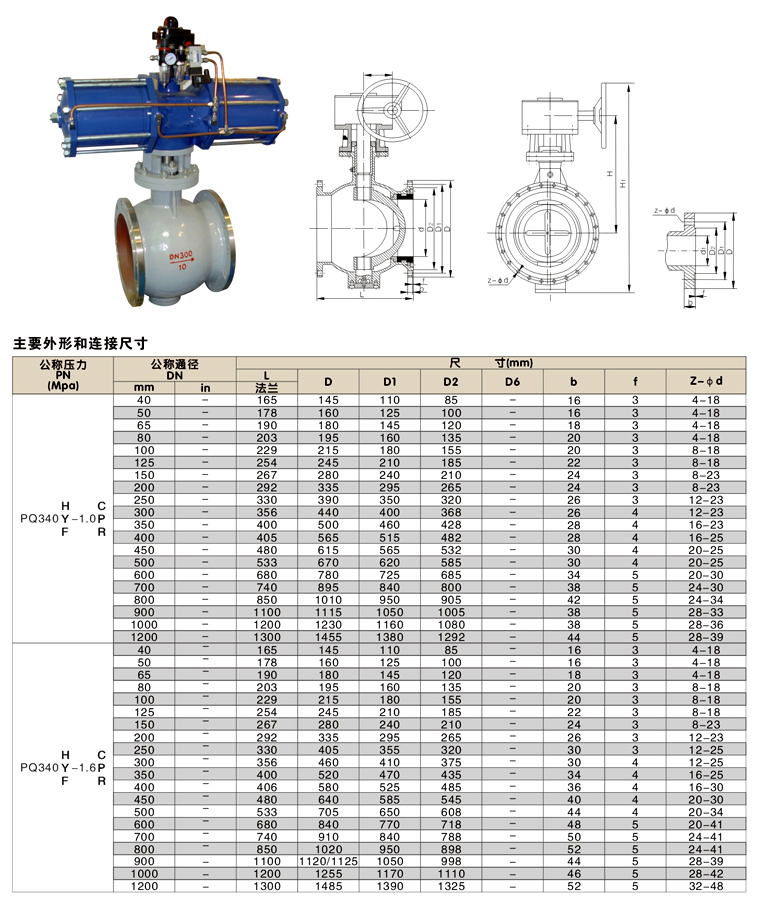 氣動(dòng)偏心半球閥,PQ64OH氣動(dòng)偏心半球閥參數(shù)尺寸圖: