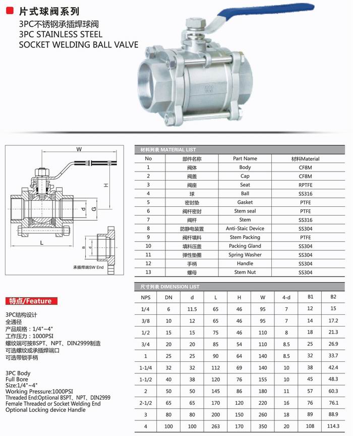 三片式承插焊球閥實(shí)物圖