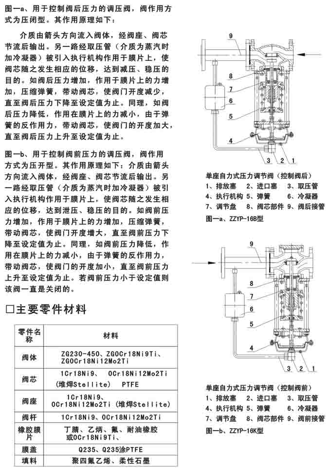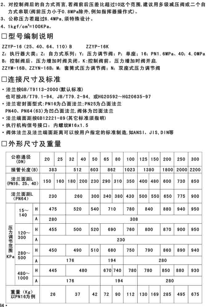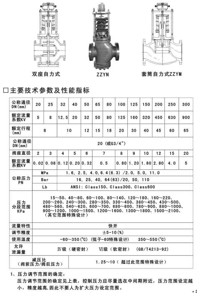 本系列產品有單座(ZZYP),套筒(ZZYM),雙座(ZZYN)三種結構;執行機構有薄膜式、活塞式二種;作用形式有減壓用閥后壓力調節(B型)和泄壓用閥前壓力調節(K型)。